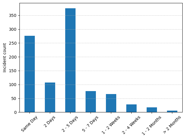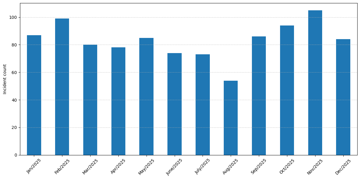 Compared to 2024, we see that on average it took more time to get to a solution for the incidents. This is probably related to the increase in number of incidents for the Pixiu service, where it is often impossible to provide an immediate solution.