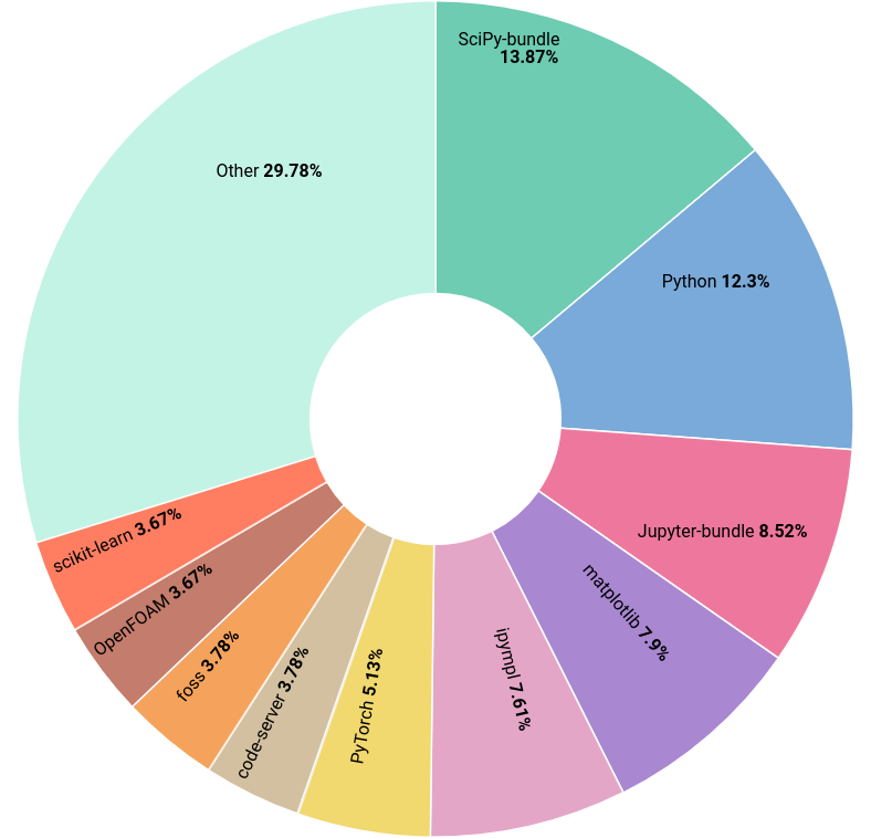 As expected, the majority of users on our clusters are researchers, but this year the ratio of students slightly increased by 5%. It must be noted that the Students category includes only students up to the Master level.